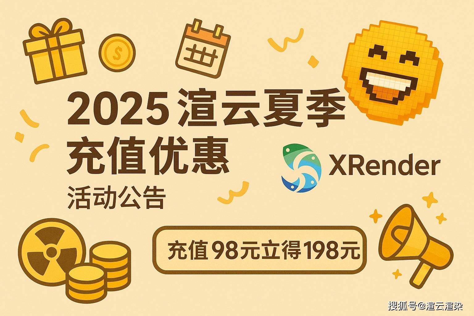 2025 渲云夏季充值优惠活动|98元立得198渲染币·5-6月云渲染充值攻略