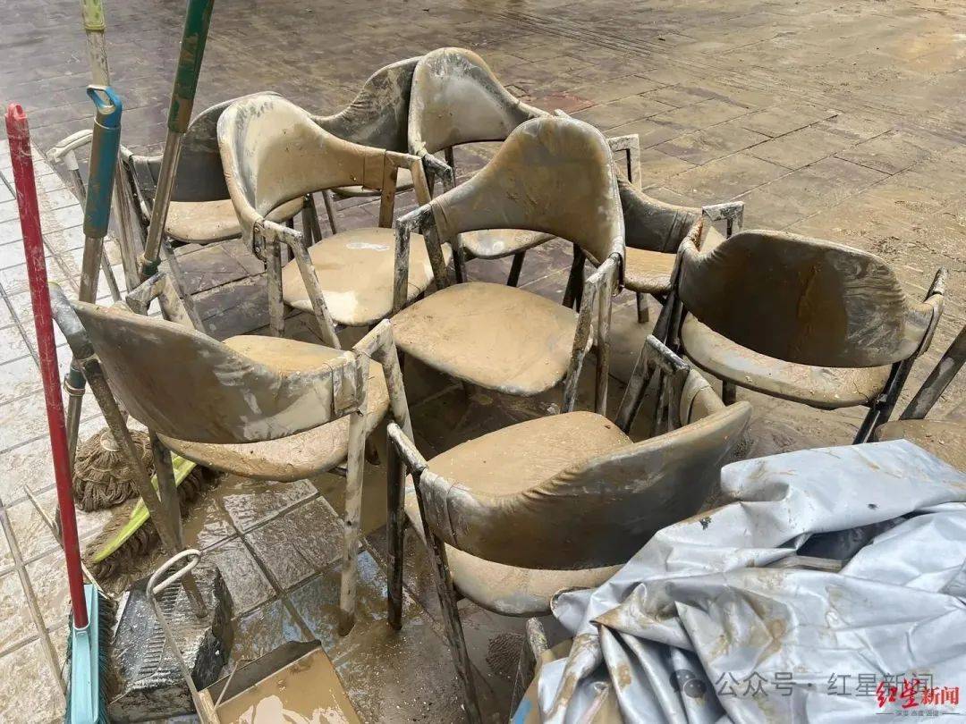 洗车店店员表示,原本第一波洪水过去后,他们的清淤工作已经进行得差不多了,店里的设备和店门口的人行道都被清理干净;但第二波洪水来了之后,店里又被淹了,之前做的工作又要重新进行。