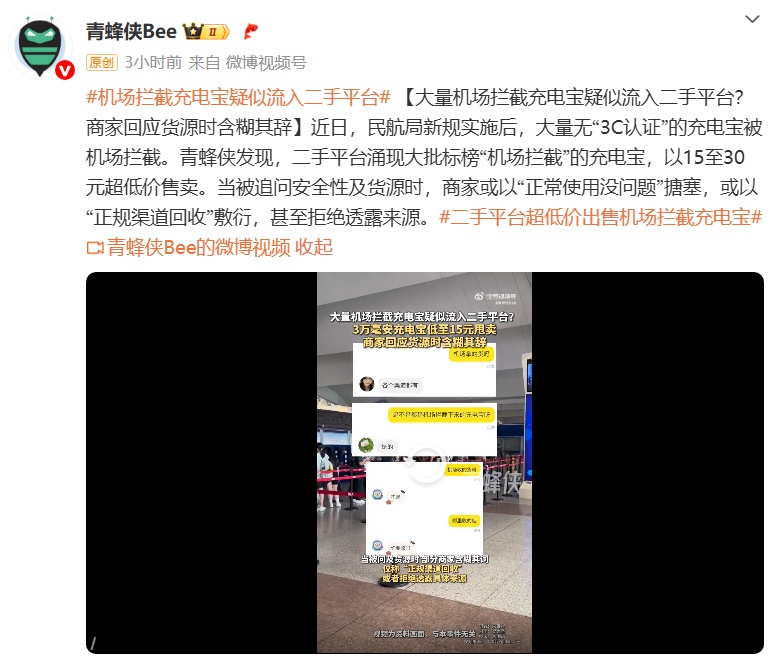 二手平台涌现大批标榜“机场拦截”的充电宝