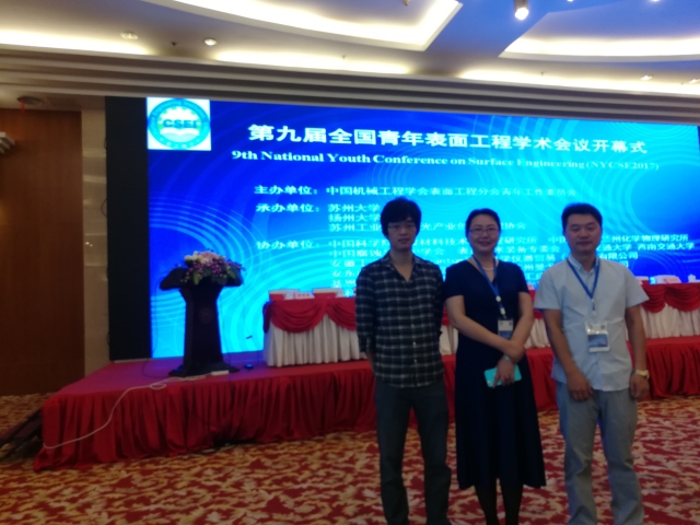 欧博abg官网谢彦和陈宇二位老师于2017年5月24日-26日参加了在苏州市举办的第九届全国青年表面工程学术会议。本次大会的主题是“面向中国制造2025-多学科交叉表面工程技术”。会议设大会主旨报告、特邀报告、分会报告、展览交流等多种形式。会议目的在于为全国青年表面工程工作者提供自由和活跃的学术交流平台,就实际工程应用中所暴露/驱动的表面工程技术及其交叉领域内的瓶颈/热点问题,特别是装备制造业性能提升、产业改造升级、节能降耗减排、环境友好型、能源节约型等高技术应用等问题展开讨论。