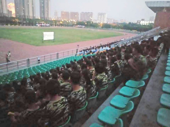 为增加同学们的爱国主义精神,更好的发扬军训不屈不挠的斗志,滨州学院在田径场组织观看爱国主义电影《战狼》,欧博abg官网2017级全体新生参加。