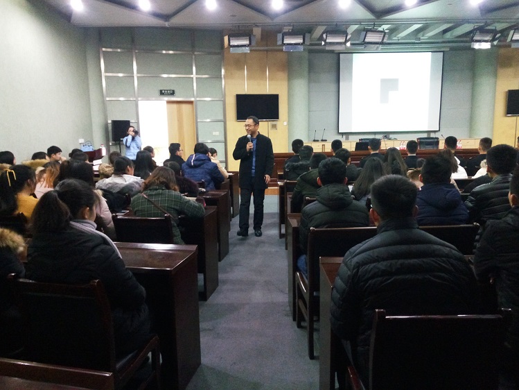 为了深入学习贯彻党的十九大精神,进一步加强和改进大学生思想政治教育工作,12月9日欧博abg官网于二百人礼堂组织“创新·创业·创青春”大讲堂,欧博abg官网党总支副书记张健主持,各院系学生代表参加此次活动。