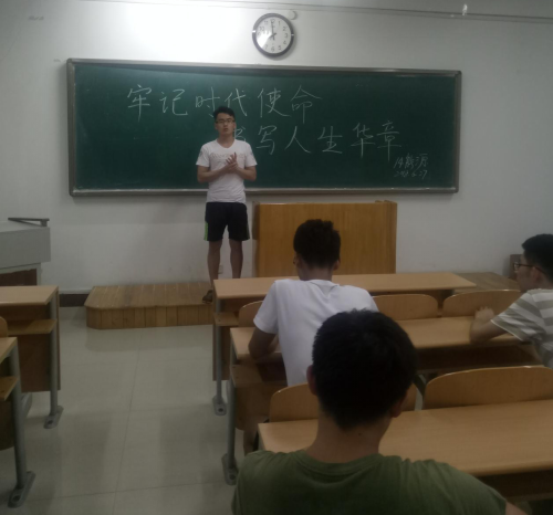 6月27日,在9教409教室,14能源班举办了“牢记时代使命,书写人生华章”的主题班会,会议伊始,班长李峰先介绍了此次班会的主题,传达了毕业生安全文明离校教育活动方案安排,强调离校前需完成的任务以及注意事项;随后,班主任段老师对安全文明离校教育活动方案进行了强调和说明,并肯定了班级学生从进入大学以来各方面的进步,并希望他们再接再厉,争取创造更好的成绩;然后,能源教研室负责人解老师充分肯定了能源班全体成员的辛苦付出,赞扬了班级纯正团结的班风,并且希望班级所有同学珍惜今后相见的机会,相互帮助,共铸辉煌;此外,解老师也希望大家都能够永远怀着对滨州学院,对化工与安全学院全体老师感恩的心,明确今后学习目标,牢记时代使命,努力学习,毕业后投身于祖国的建设中去;最后,解老师要求大家临走之前留下对学校的建议和意见,并且以后要一直关心学校发展,经常回家看看。