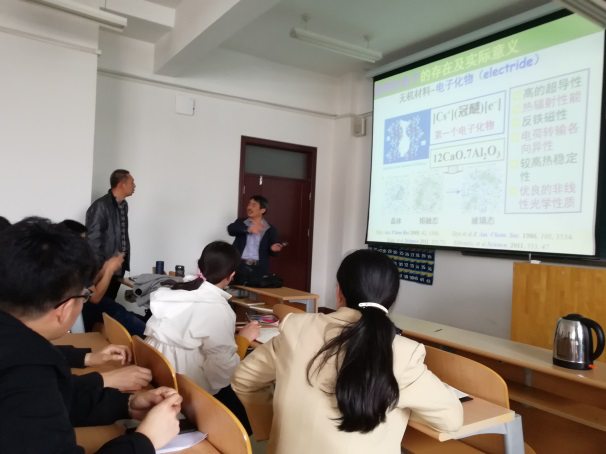 步宇翔教授在报告中以原子、分子及物质的构成为切入点,深入浅出的介绍了理论、计算模拟化学的发展历史,介绍了自己在溶剂化电子结构方面的科研工作并与参会师生进行了互动交流。会后步教授参观了欧博abg官网实训中心,并与部分教师在科研方面进行了深入交流。