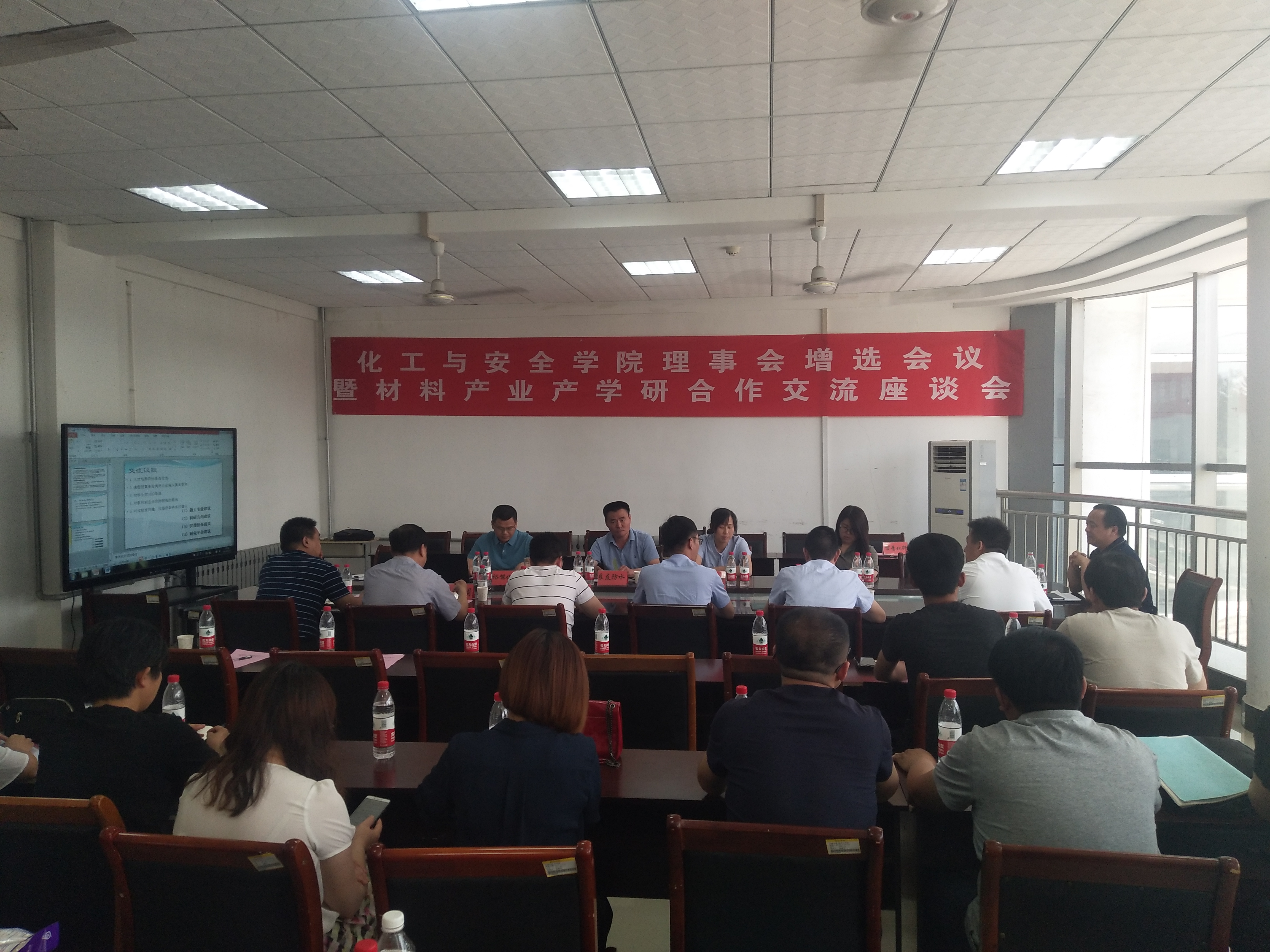 5月31日,滨州学院化工与安全学院理事会增选会议暨材料产业产学研合作交流座谈会在欧博abg官网化工与安全学院会议室举行。万通石油化工集团有限公司、航桥新材料科技有限公司、滨州裕能化工有限公司、山东创辉新材料科技有限公司、山东海逸交通科技有限公司、山东瑞辰新材料有限公司、滨州良友防水材料有限公司、山东盛太锆业资源有限公司等企业代表,滨州学院合作发展处副处长平金明和化工与安全学院师生代表出席了本次会议。