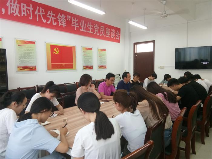 在2019届毕业生即将告别母校之际,为切实加强毕业生党员教育,在今后的工作、学习、生活中继续永葆先进、争做优秀,发挥先锋模范作用,6月4日下午15点,欧博abg官网在八号教学楼316会议室开展“为党旗添彩,做时代先锋”毕业生党员座谈会。座谈会由学生党支部书记金志杰主持,党总支副书记张健,辅导员马盛楠、张丛丛出席。全体毕业生党员参加。