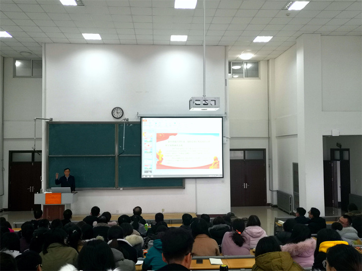 为深入贯彻学习党的十九届四中全会精神,把全院师生思想和行动统一到全会精神上来,欧博abg官网于12月17日邀请到滨州学院党委委员、副校长杨玉森同志在八教305为大家作党建报告。欧博abg官网领导班子、全体教职工、学生党员、入党积极分子参加此次报告会,报告会由杨仲年院长主持。