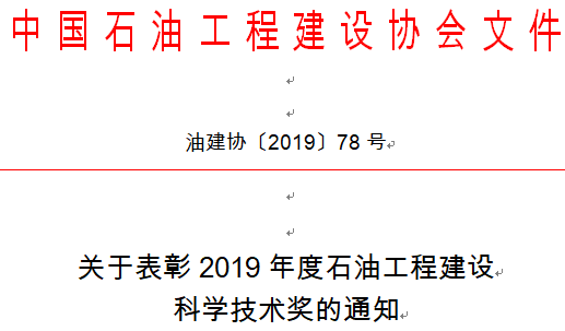 中国石油工程建设协会科学技术奖主要授予在中国石油工程领域从事生产实践、科学研究、工程建设、企业管理等方面并取得突出成绩、做出突出贡献的工作者或管理者。2019年共有60项科技成果获得“科技进步奖”,其中,特等奖1项、一等奖11项、二等奖20项、三等奖28项。