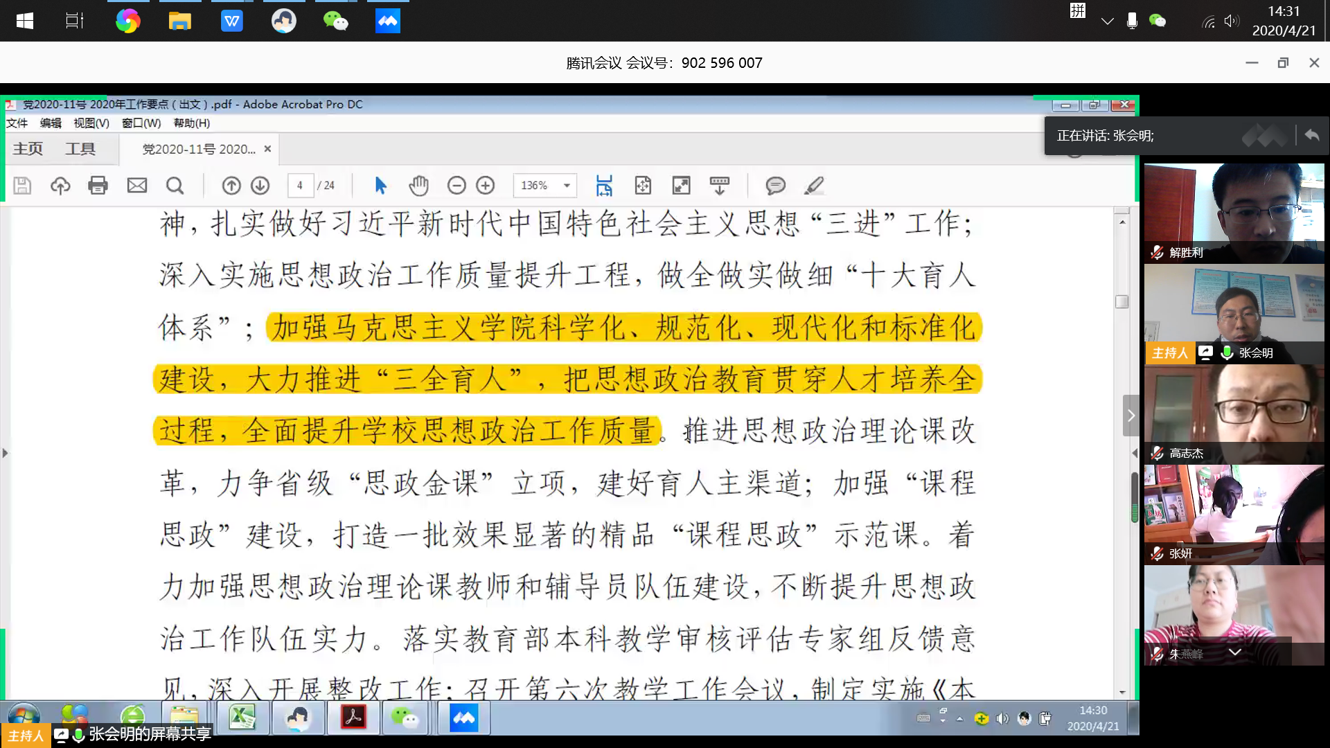 王建传达了刘春华书记、李长海校长2020年度学校工作会议讲话精神和学校2020年工作要点,组织班子成员围绕欧博abg官网当前重点工作进行了安排部署。