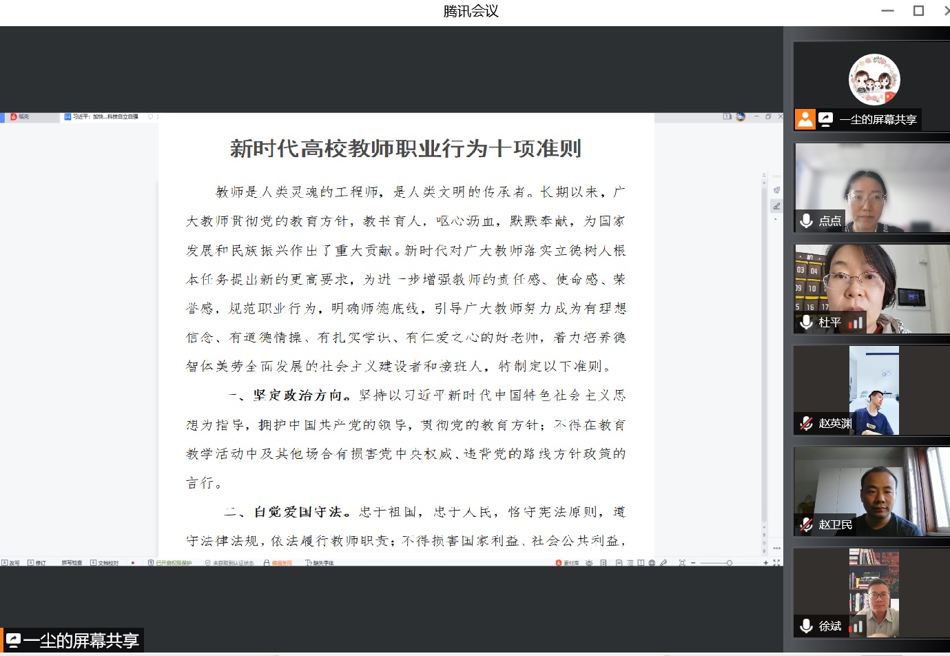 本次活动,全体教工认真学习,深入领会,通过学习第九批7起违反教师职业行为十项准则典型案例,学院全体教师引以为戒,做到警钟长鸣,切实弘扬良好师德师风,明确师德底线红线;同时,进一步增强教工履行疫情防控意识,落实疫情防控责任,确保全体教工安全健康和学校安全稳定。