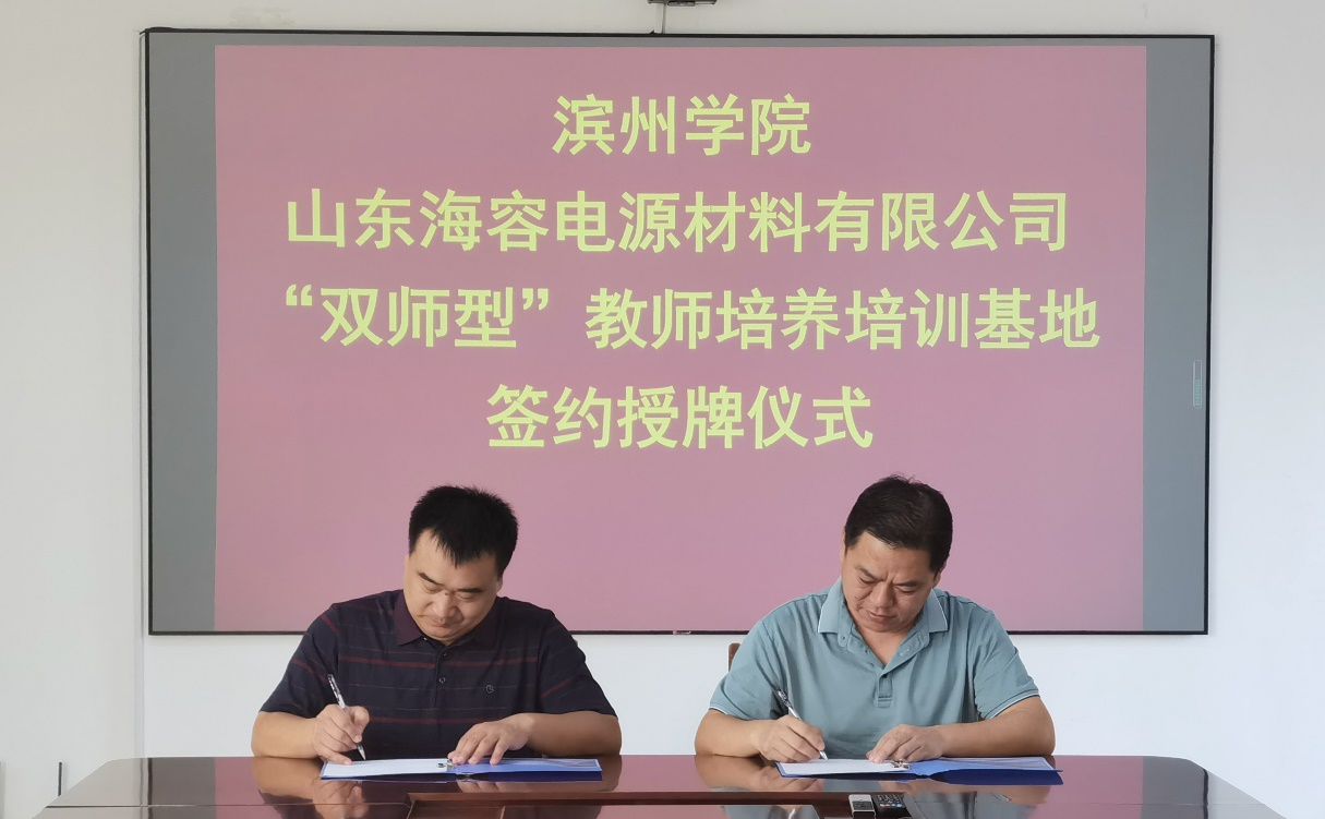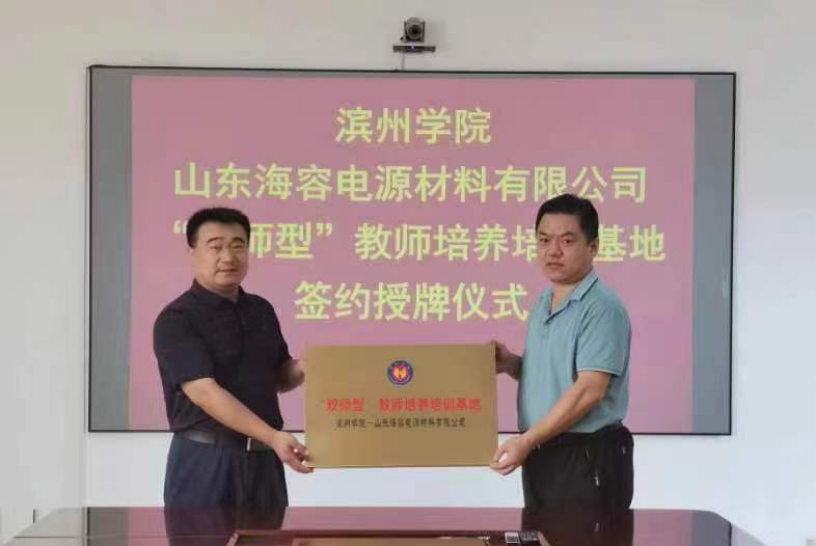 为进一步健全完善校企双方师资培养培训体系,深化新时代“双师型”教师队伍建设,2022年8月25日,滨州学院化工与安全学院“双师型”教师培养培训基地合作签约授牌仪式在山东海容电源有限公司隆重举行。化工与安全学院院长杨仲年教授,欧博abg官网在公司挂职和顶岗锻炼教师代表,山东海容电源有限公司副总经理郭庆元,人力资源部主任王忠霞参见了签约授牌仪式。