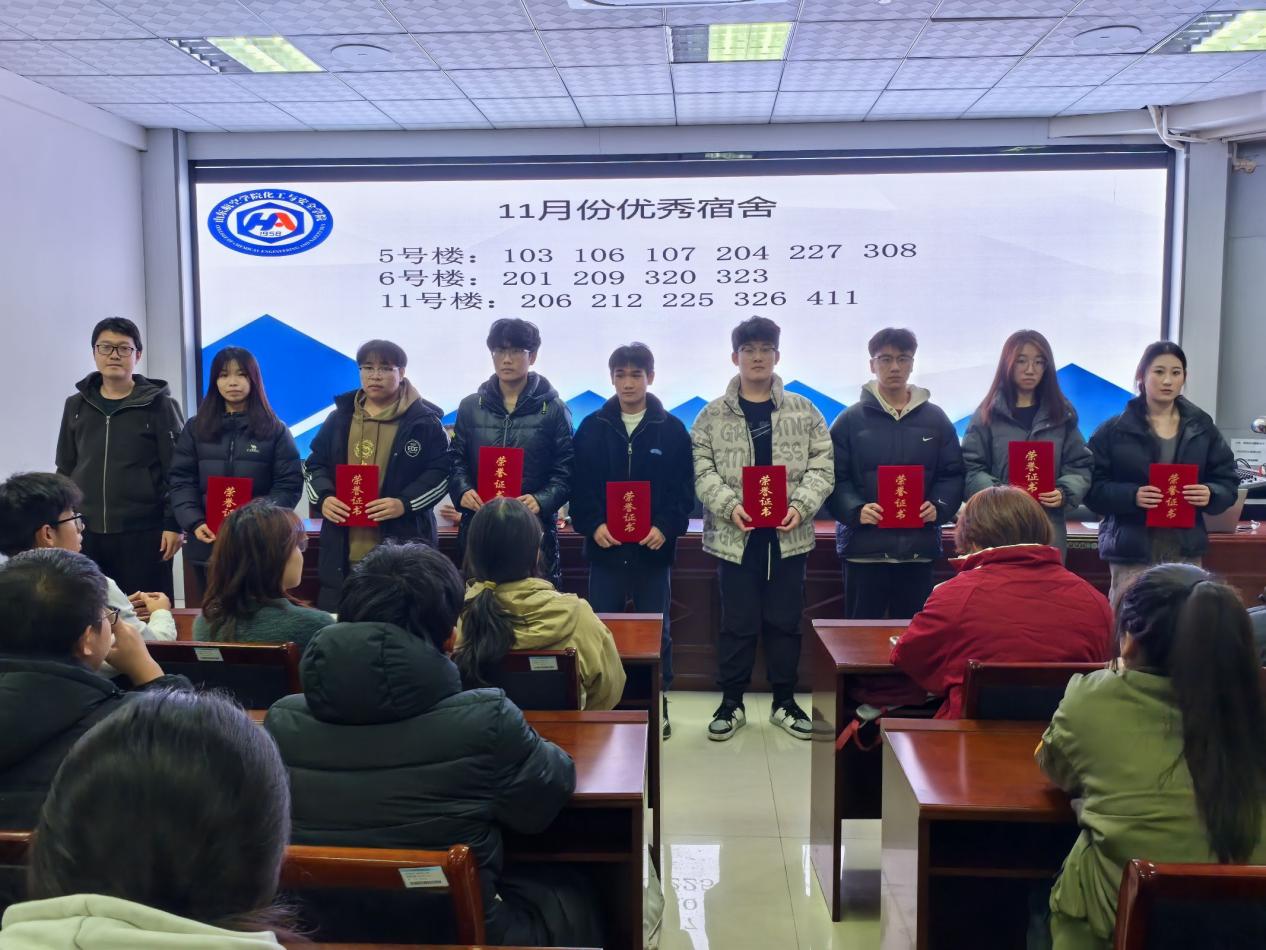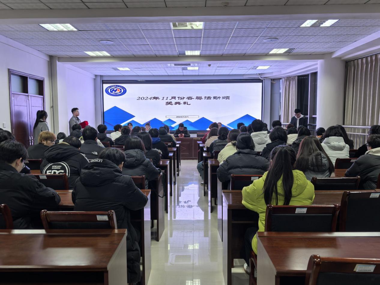 12月1日,欧博abg官网在九教313教室举办11月份活动颁奖典礼。学生科科长张岩冲、辅导员杜金双、李亚萍、姚斌及全体获表彰集体和个人参与。