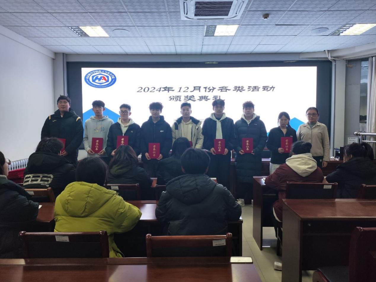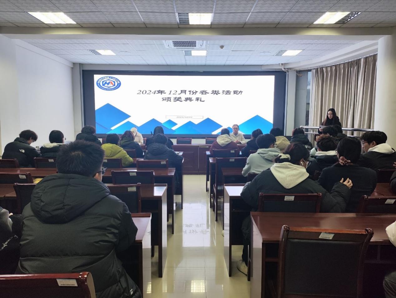 12月22日晚,欧博abg官网在9号教学楼313教室举行12月份颁奖典礼,旨在表彰在各类活动中表现杰出的团队和个人,激励其他参与者不断追求卓越,同时增强比赛的仪式感和吸引力。学生科辅导员杜金双、姚斌及全体获奖人员参加。
