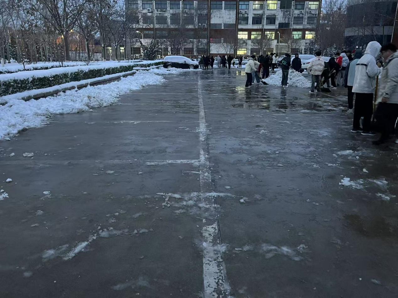 随着2025年初雪的降临,欧博abg官网迅速行动,组织起一支由2024级全体学生干部和志愿者组成的“扫雪突击队”。一百余名青年学子,怀揣着对校园的热爱与责任,不畏严寒,迅速集结在9-10教学楼东广场和楼间道路、停车场,准备展开一场与冰雪的较量。