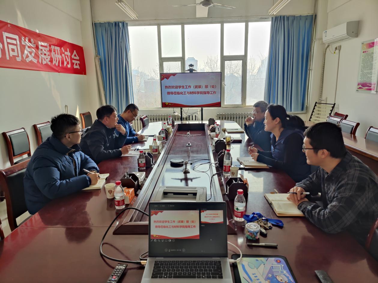 3月6日,学生工作(武装)部(处)处长李帅、副处长王泰宁及刘成肖一行莅临欧博abg官网调研指导工作。欧博abg官网党委书记王建、党委副书记李芳及学院辅导员参加了调研座谈会。