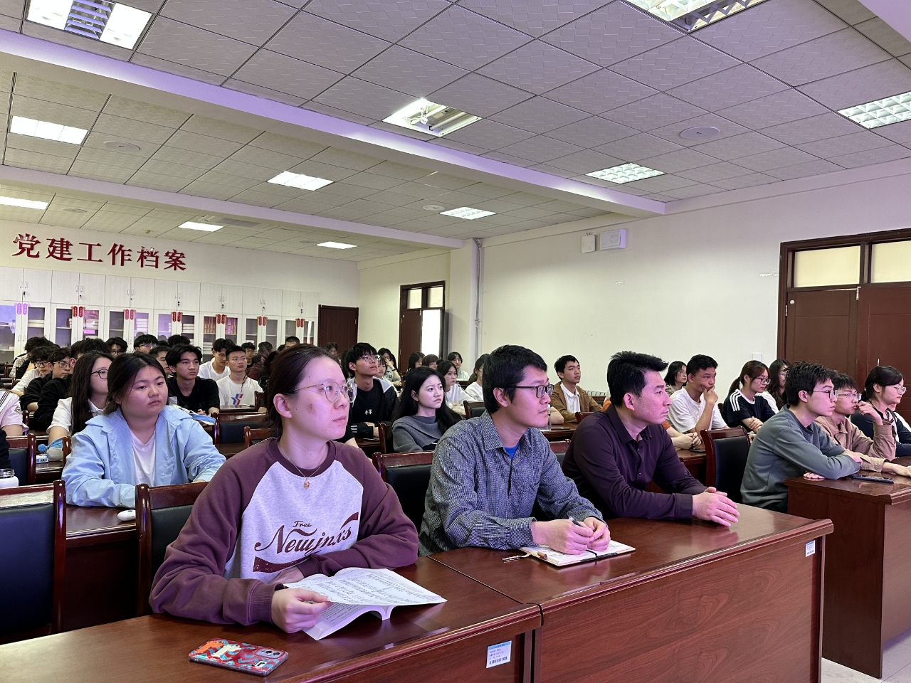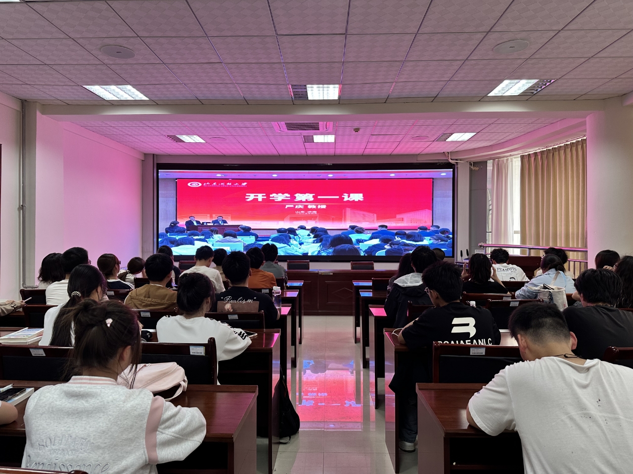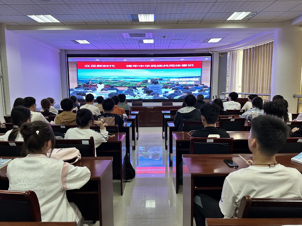 为深入贯彻习近平总书记关于加强和改进民族工作的重要思想,4月11日下午欧博abg官网副院长商希礼,辅导员张岩冲、姚斌及少数民族学生代表等近百人,通过线上平台在九教313集中观看了由中央民族大学严庆教授主讲的《立足新时代铸牢中华民族共同体意识》直播课。此次活动旨在引导青年学子深刻理解中华民族共同体意识的时代内涵,践行“中华民族一家亲”的青春使命。
