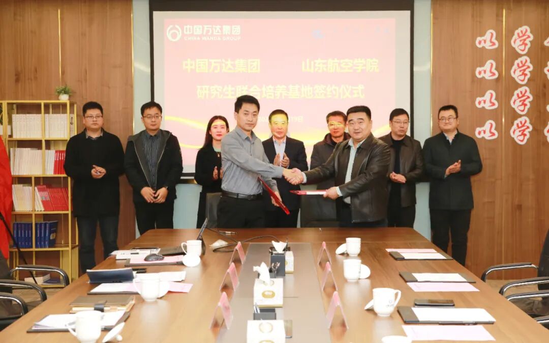 在与会人员的见证下,院长杨仲年与万达集团轮值执行总裁巴树山共同为基地揭牌,与万达集团人力资源部总监许新鹏就研究生联合培养基地进行签约。